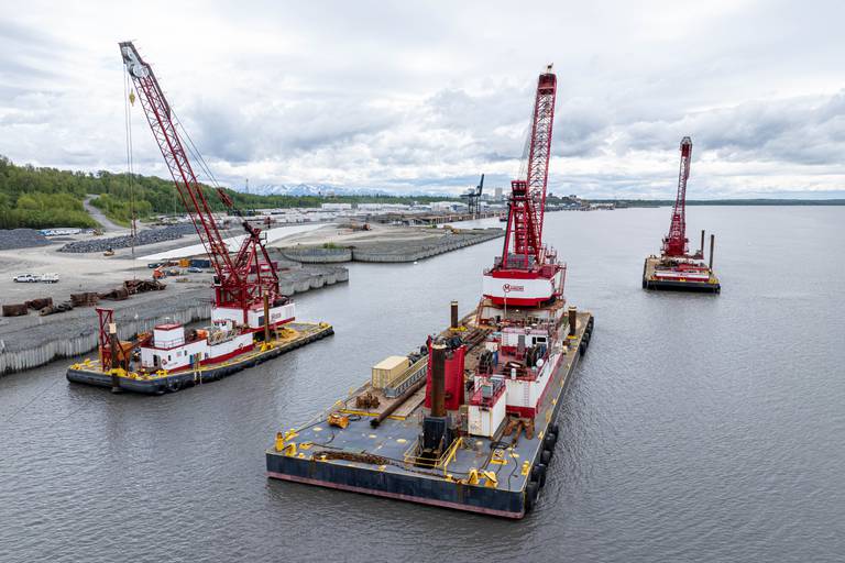 Construction crews at the Don Young Port of Alaska on Wednesday began work on the next phase of the massive port modernization project, after the Municipality of Anchorage received a long-awaited federal environmental approval that unlocks tens of millions of dollars in grant funding.